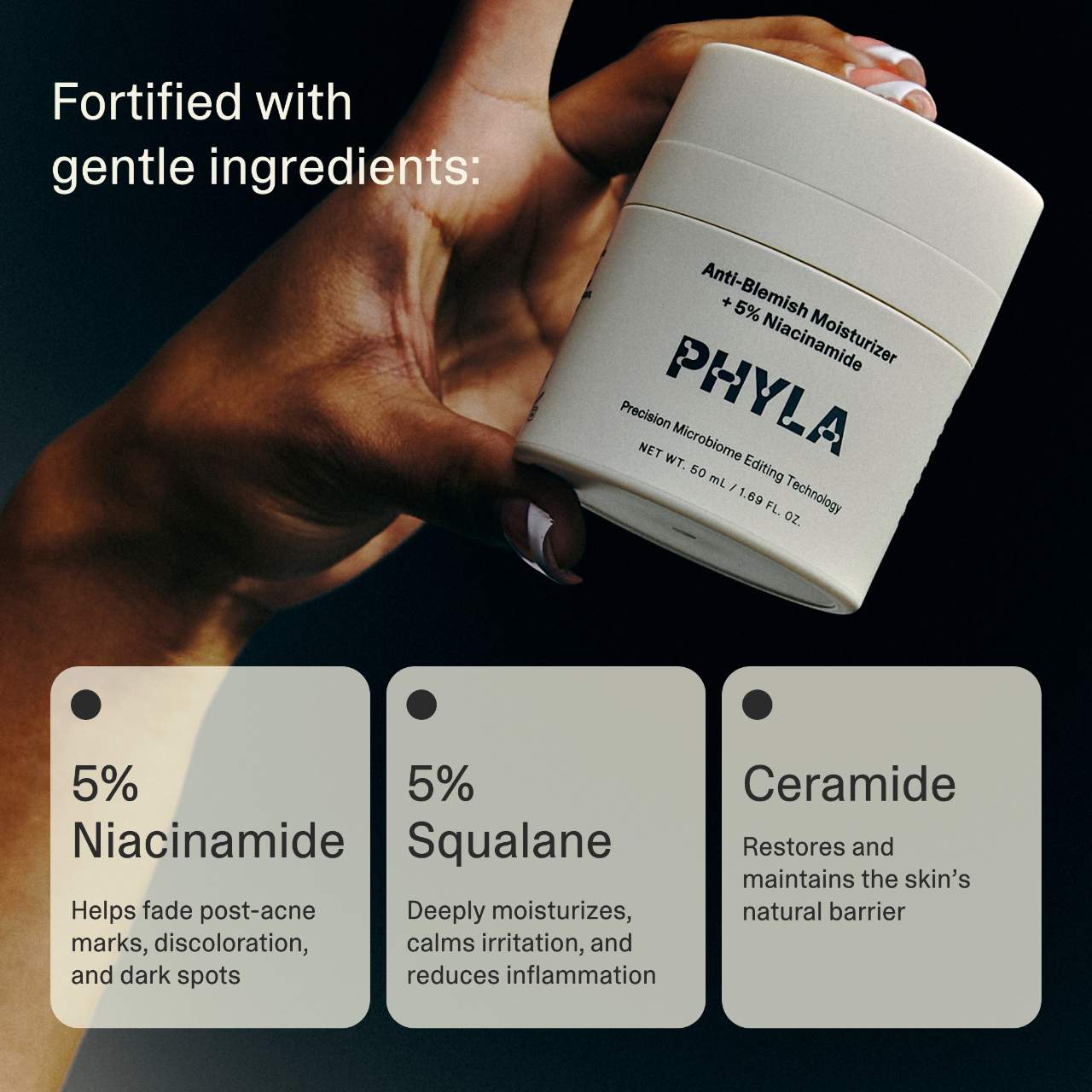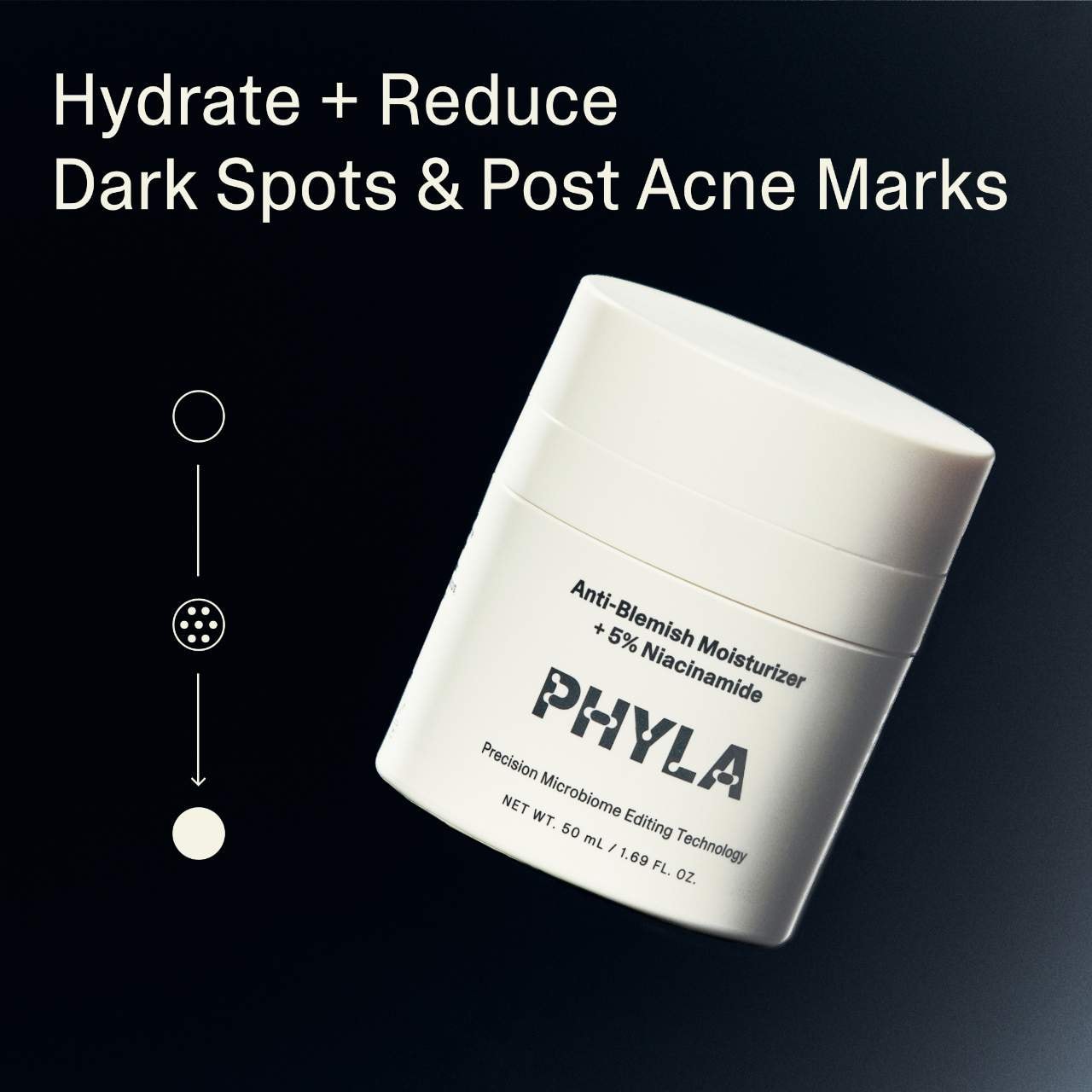 What it is: A gentle, microbiome- and phage-friendly moisturizer with 5% niacinamide that reduces and prevents the look of post-blemish marks, scars, discoloration, and spots.