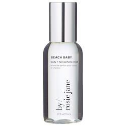 Fragrance Description: TAKE ME EVERYWHERE. Salty air kisses and sun-warmed skin. BEACH BABY body + hair perfume mist with coconut is the essence of endless summer, where zesty orange spritz and golden pineapple melt into a heart of sun-drenched florals. A whisper of coconut woods, solar musk, and sunlit amber lingers. It feels like the glow of a perfect beach day. our body + hair mists are made to go everywhere with you! beach bag, gym bag, diaper bag, you name it. lightweight, mood-lifting, and safe for hair, skin + clothes.