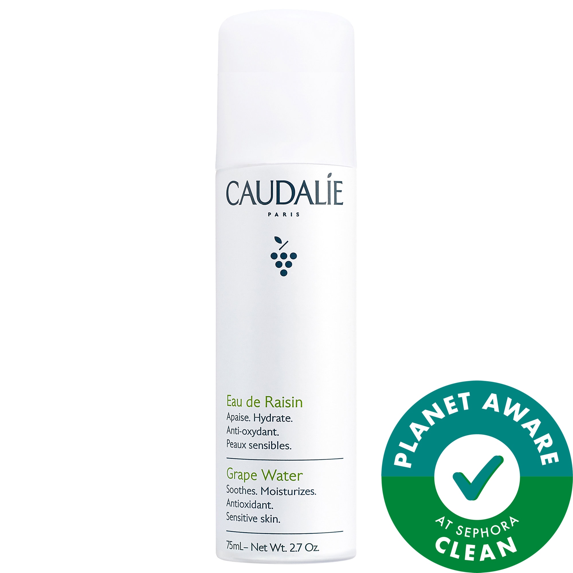 - 100 percent Grape Water: Moisturizes, soothes, and acts as an antioxidant.