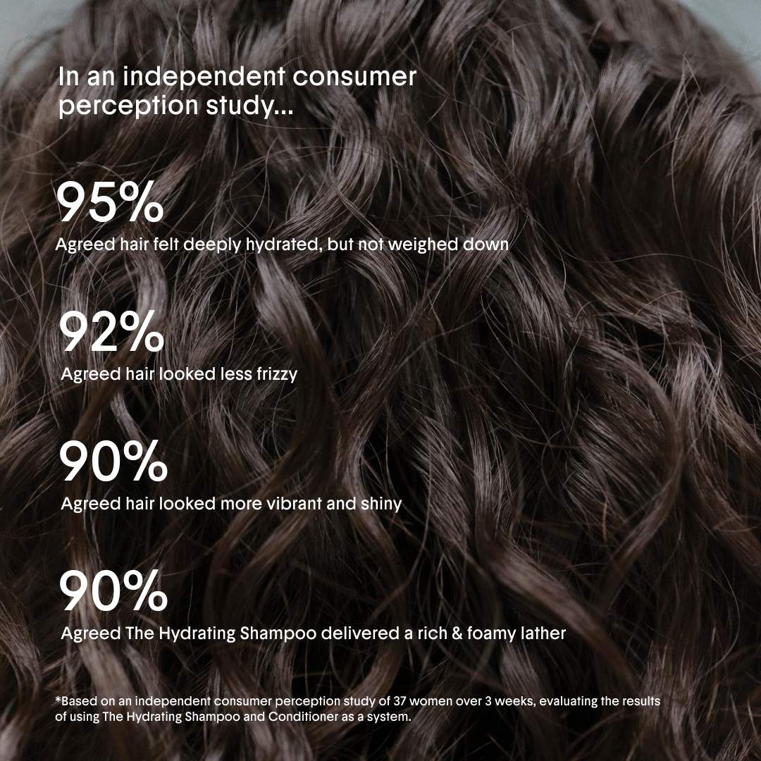 - 90% agreed hair looked more vibrant and shiny and that the Hydrating Shampoo delivered a rich and foamy lather