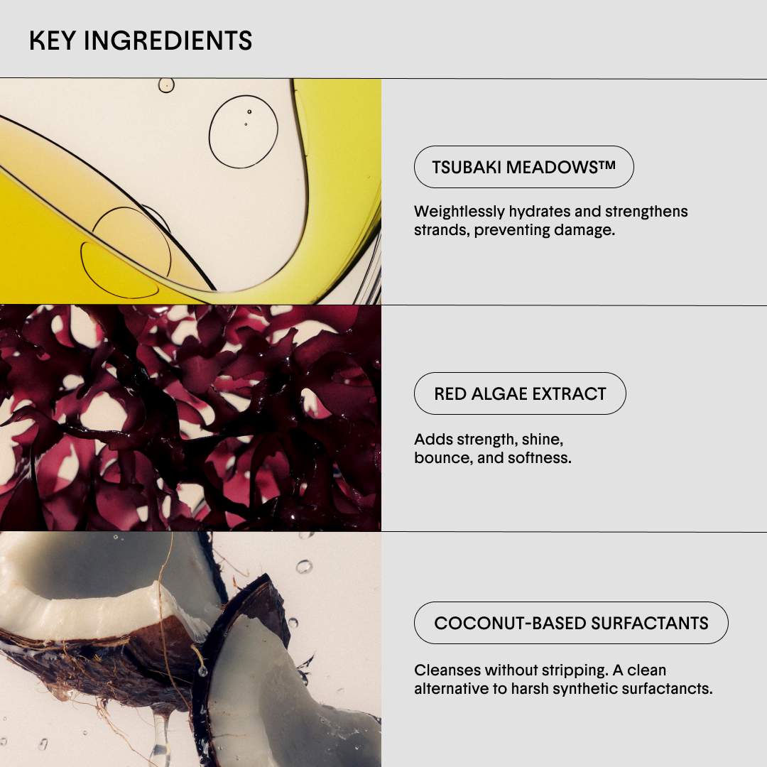 - Tsubaki Meadows™: Weightlessly hydrates and strengthens from the inside, preventing damage.