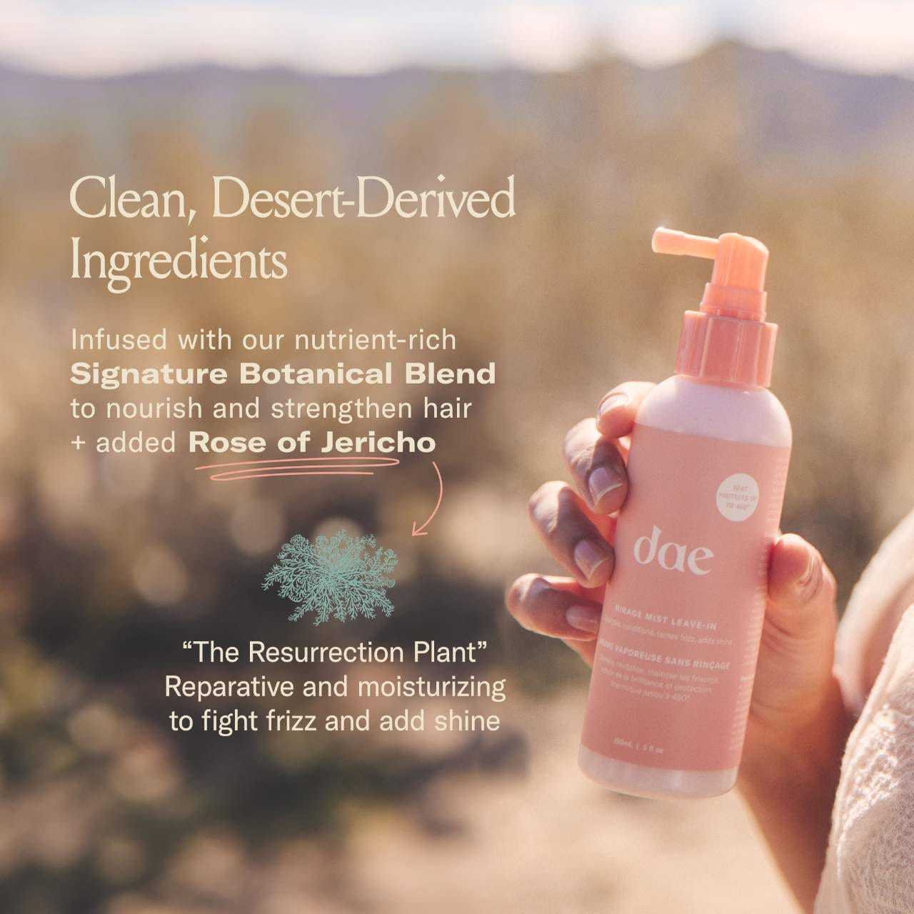 What Else You Need to Know: This milky leave-in conditioner mists on to detangle, prevent breakage & tame frizz while providing heat protection up to 450°F. Infused with Rose of Jericho, this nourishing elixir provides moisture and leaves hair silky smooth with luminous shine.