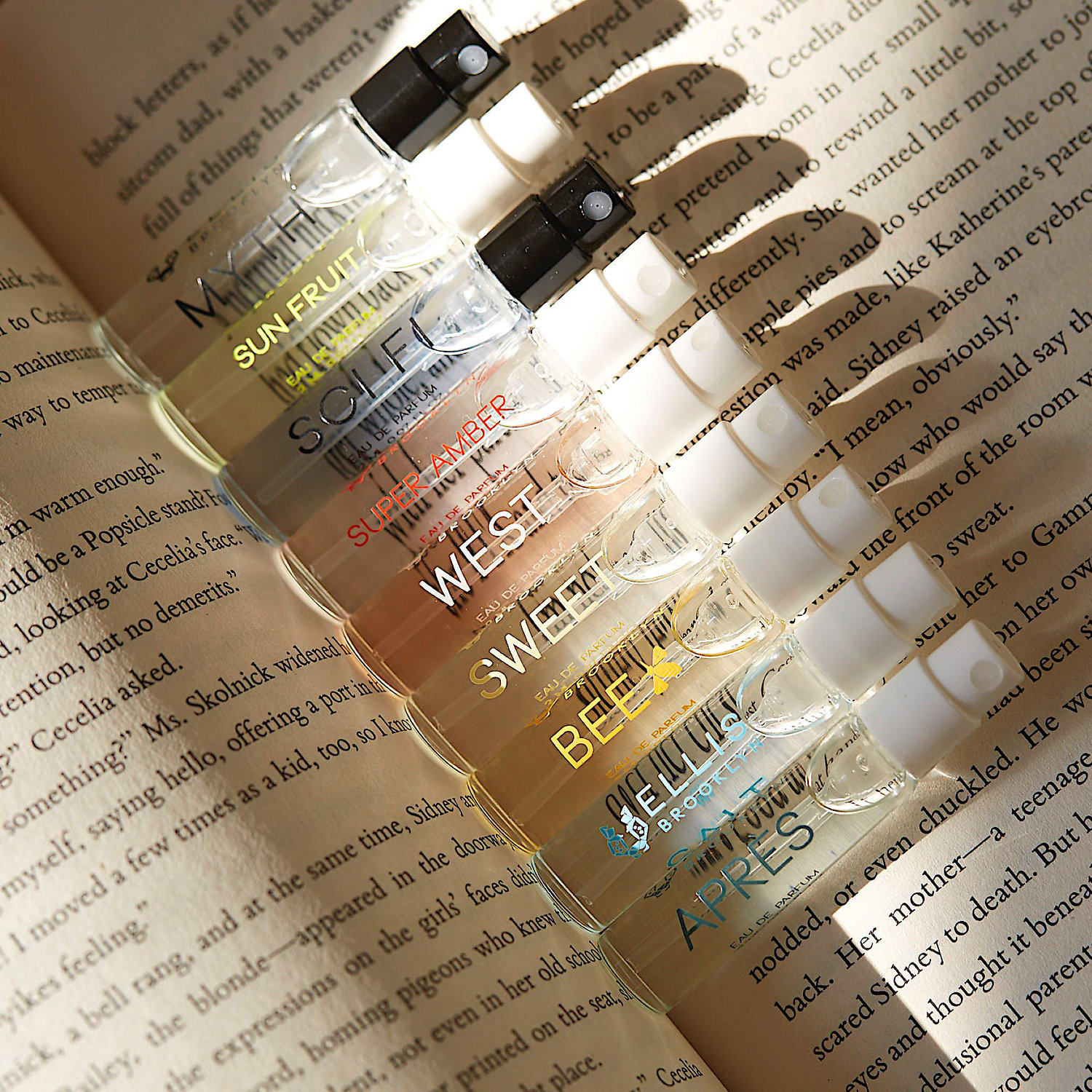 - 9 x 0.07 oz/ 2 mL Eau de Parfums in MYTH, SALT, SWEET, SCI FI, WEST, BEE, APRÈS, SUPER AMBER, SUN FRUIT