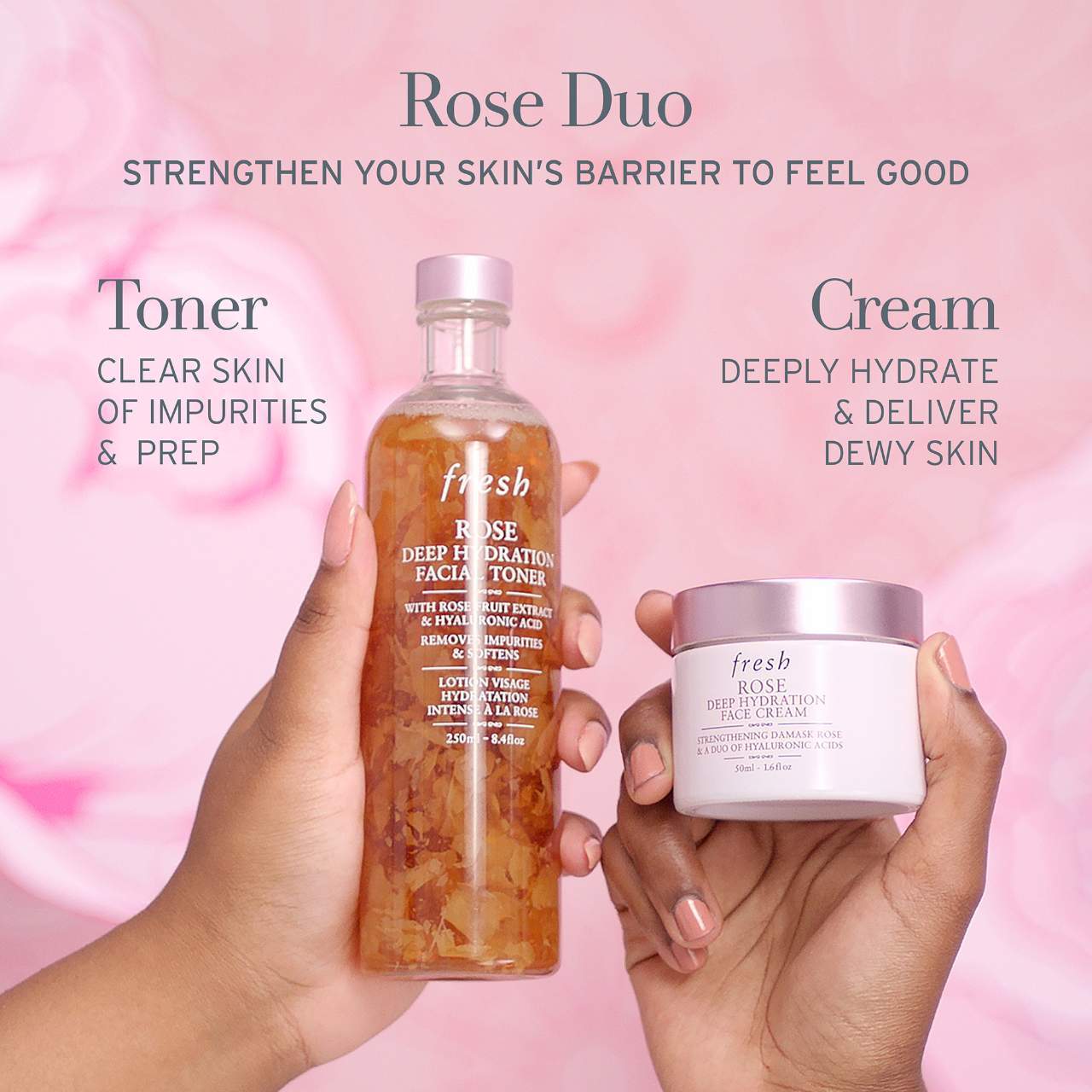 - Damask Rose Extract: scientifically proven to boost skin’s natural hyaluronic acid levels.
