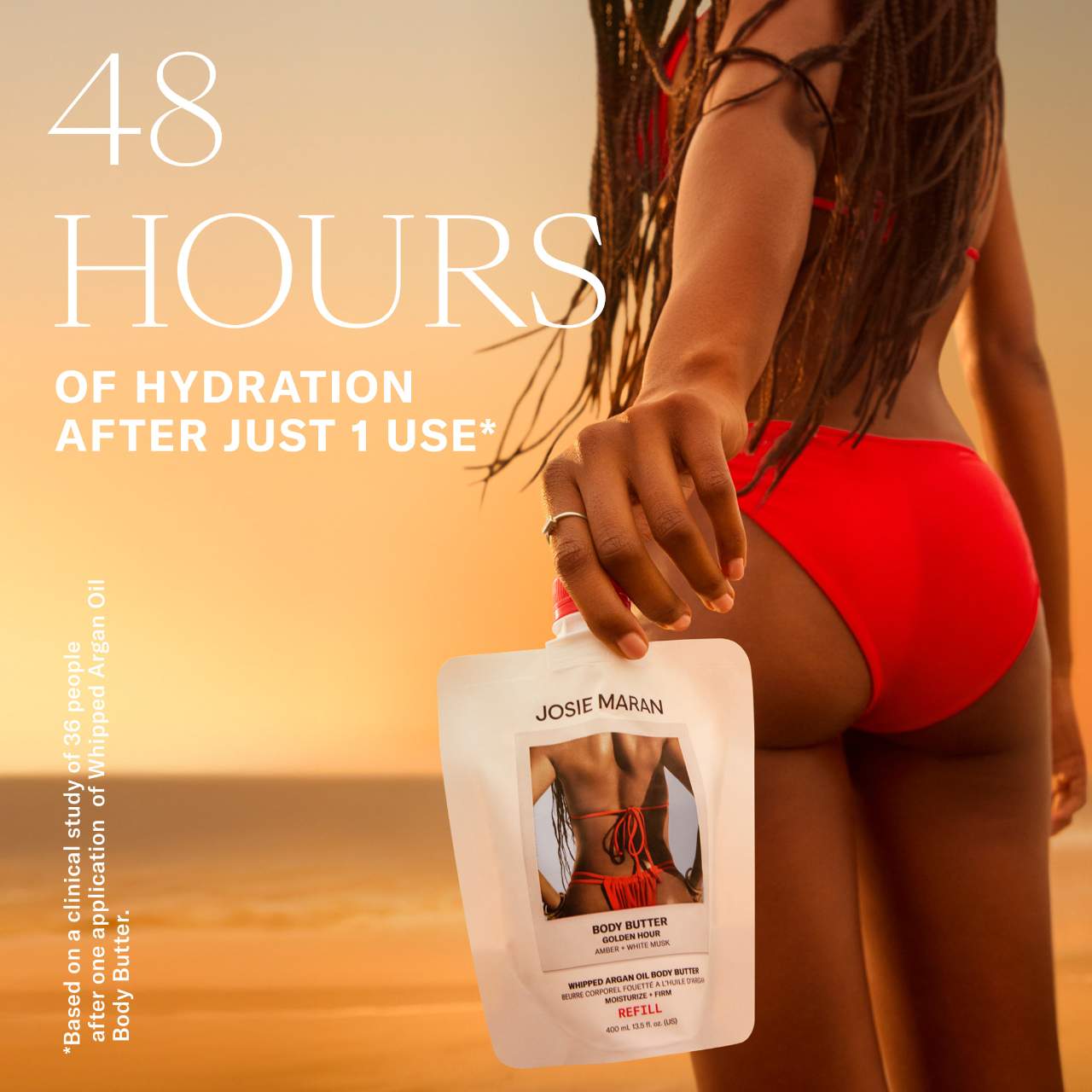 What it is: An air-whipped body butter powered by argan oil that rapidly soaks in to deliver hydration and all-over glow with amber and white musk notes.