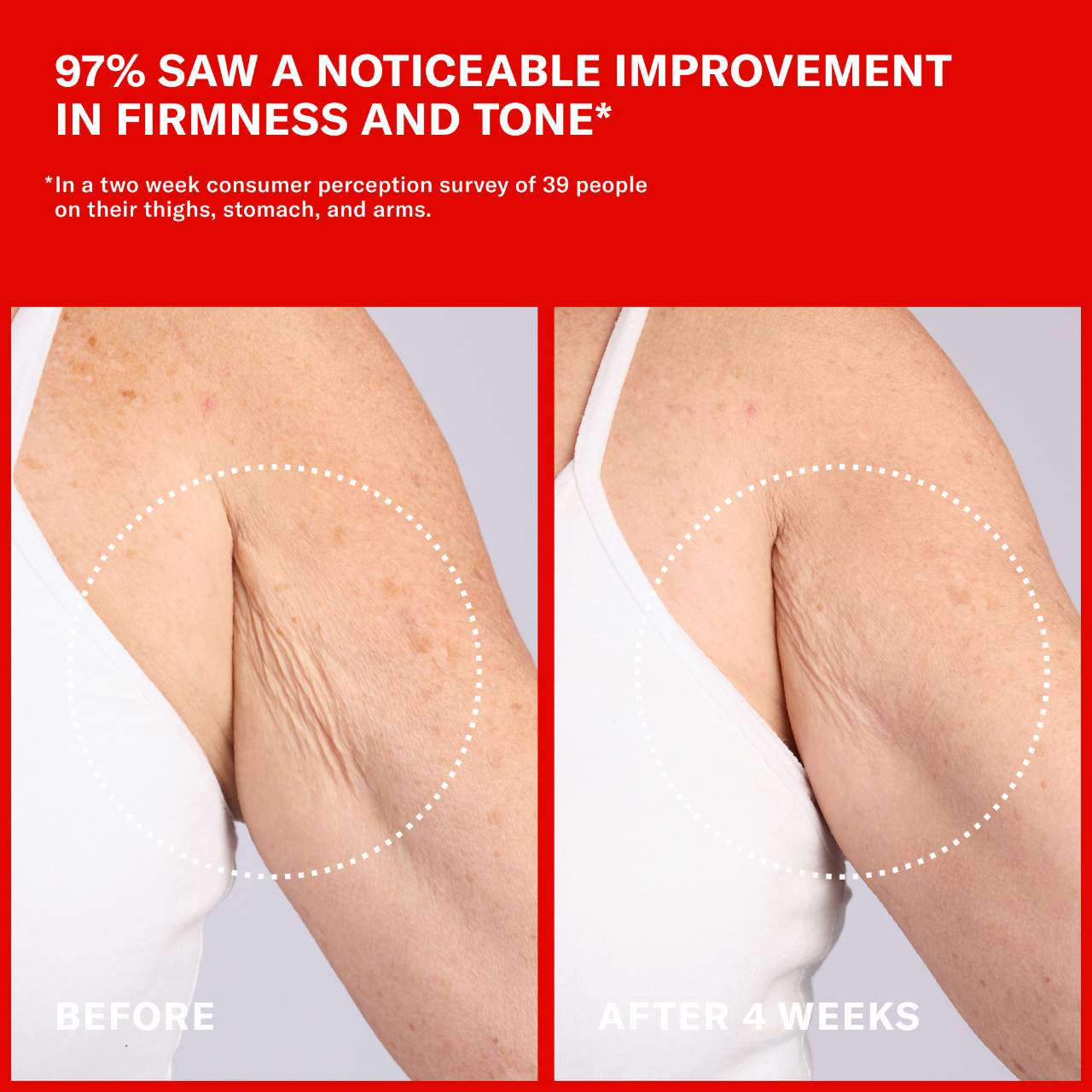 In a consumer-perception survey of 39 people using the product on their thighs, stomach, and arms: