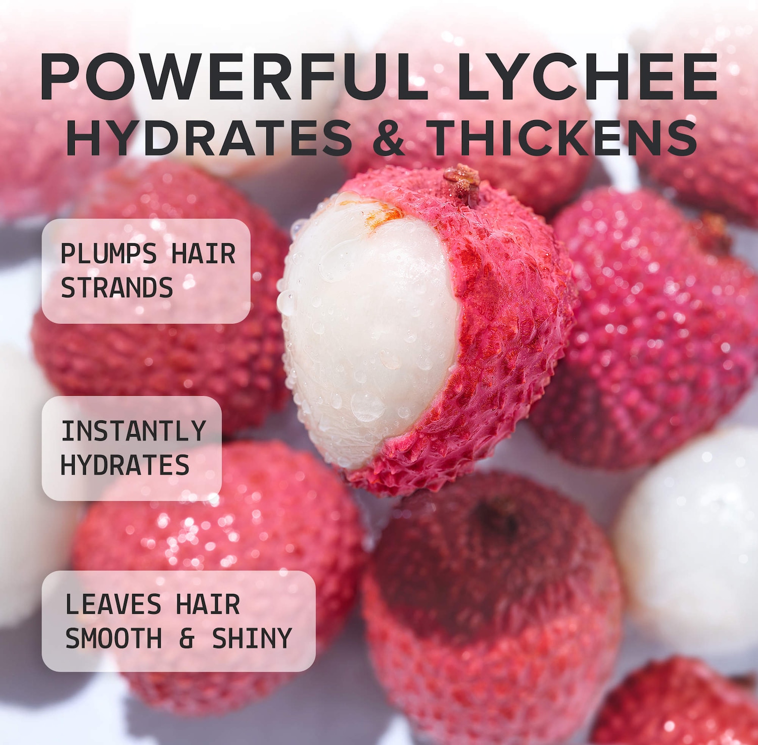 - Lychee: An antioxidant-rich fruit that visibly plumps and hydrates for softer, shinier hair.