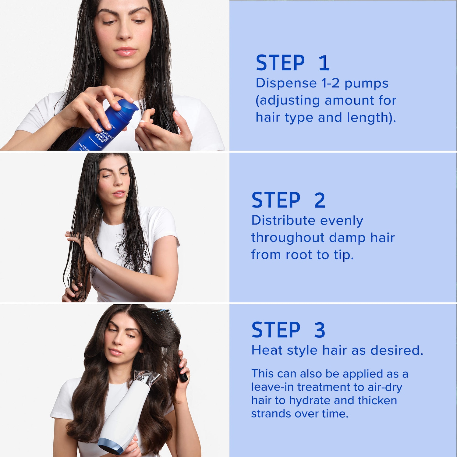 - Visibly plumps hair strands and increases blowout volume