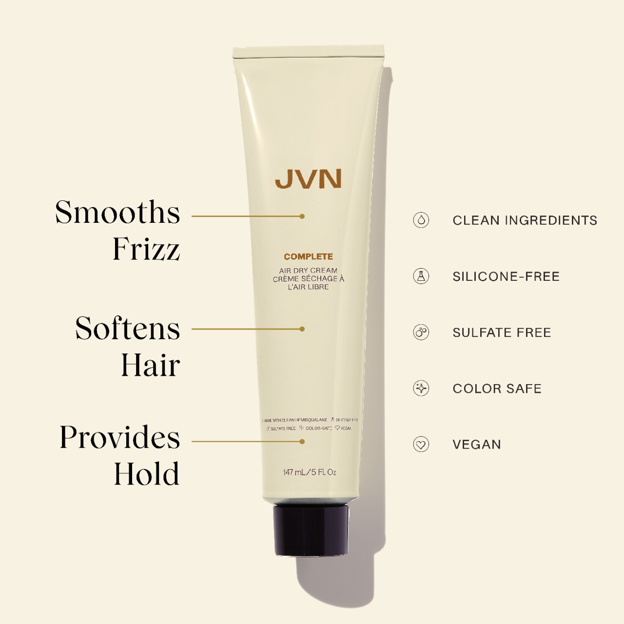 - Softly styles, moisturizes, and smooths frizz