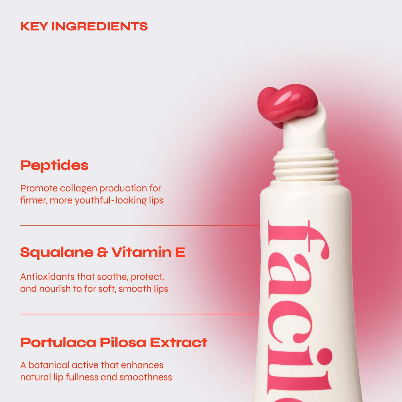 - Peptides: Support natural collagen production for firmer-, more youthful-looking lips.