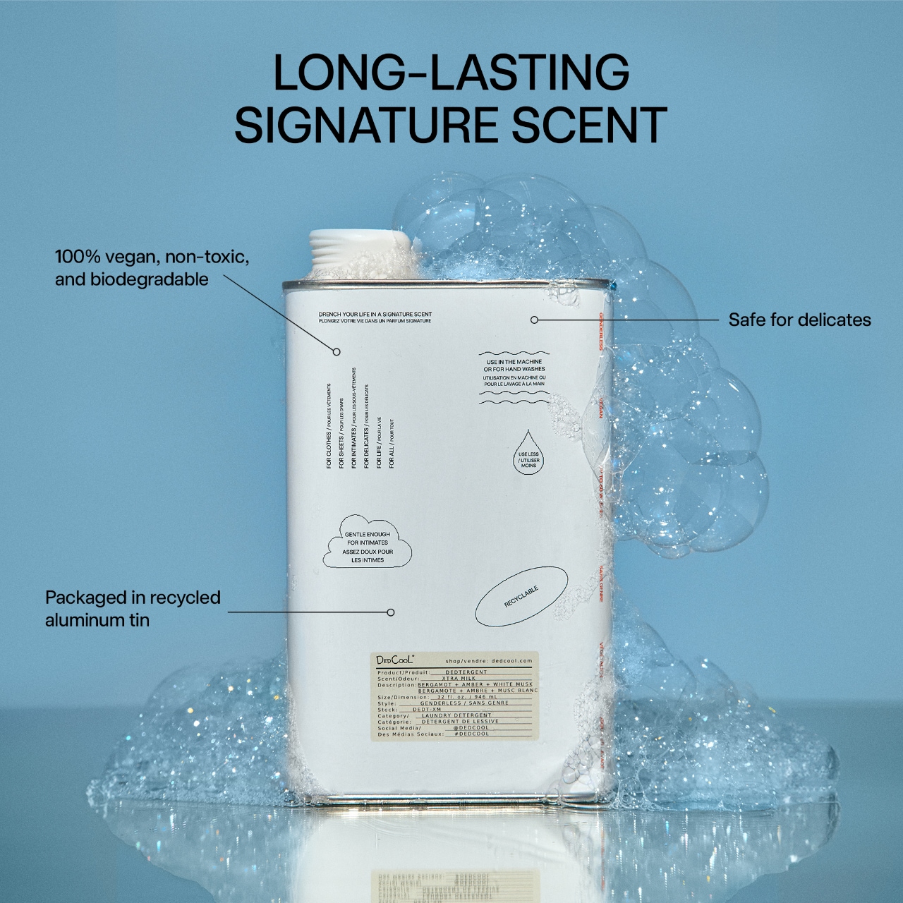 Fragrance Description: DedCool’s bestselling scent, now in their award-winning laundry detergent formula. A universal musk, amplified. Keep your friends close and your scent closer. Smells like you. Feels like pure comfort.