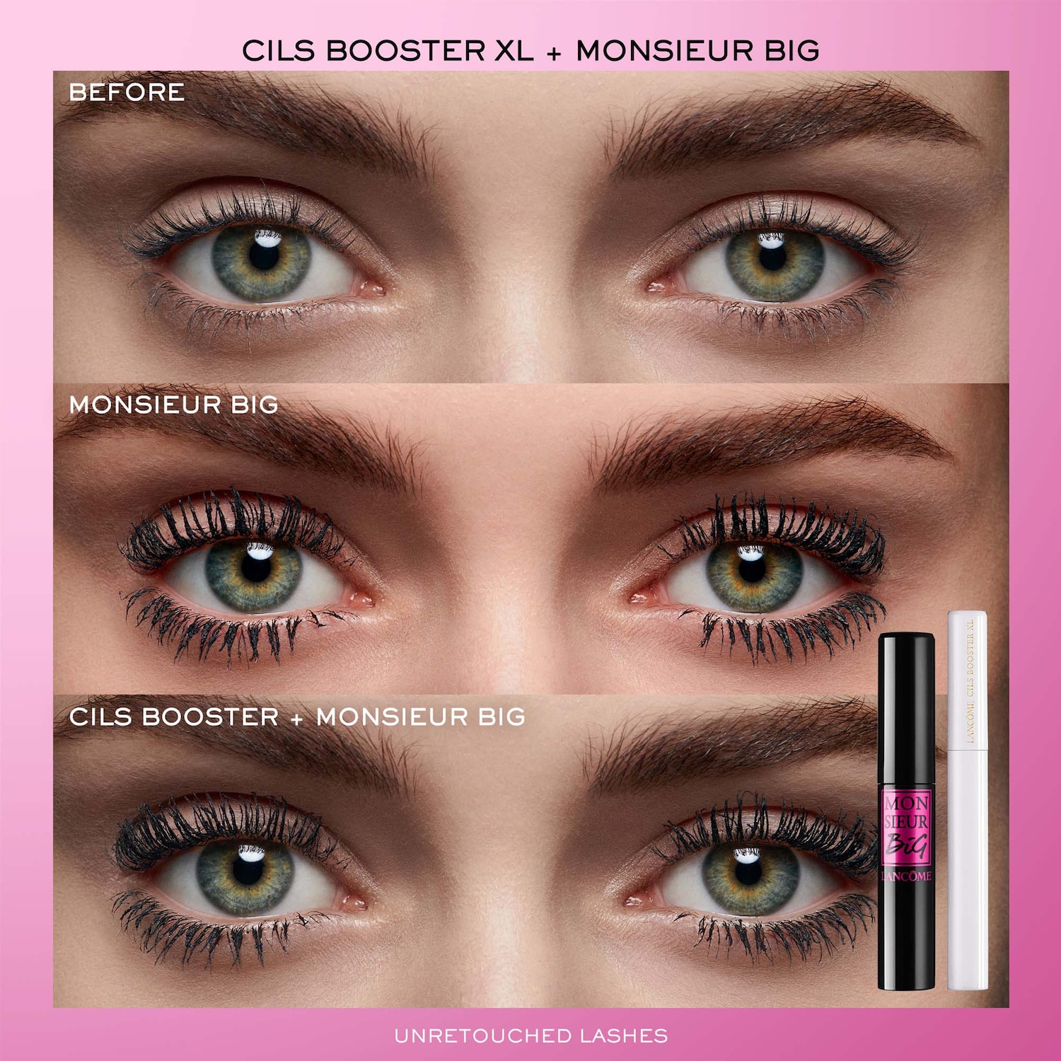 Monsieur Big’s brush has a unique shape with soft, wavy fibers to deliver the perfect amount of formula from the very first stroke. This ultra-creamy formula contains supple waxes and polymers to adhere immediately to lashes for big, buildable volume and length.