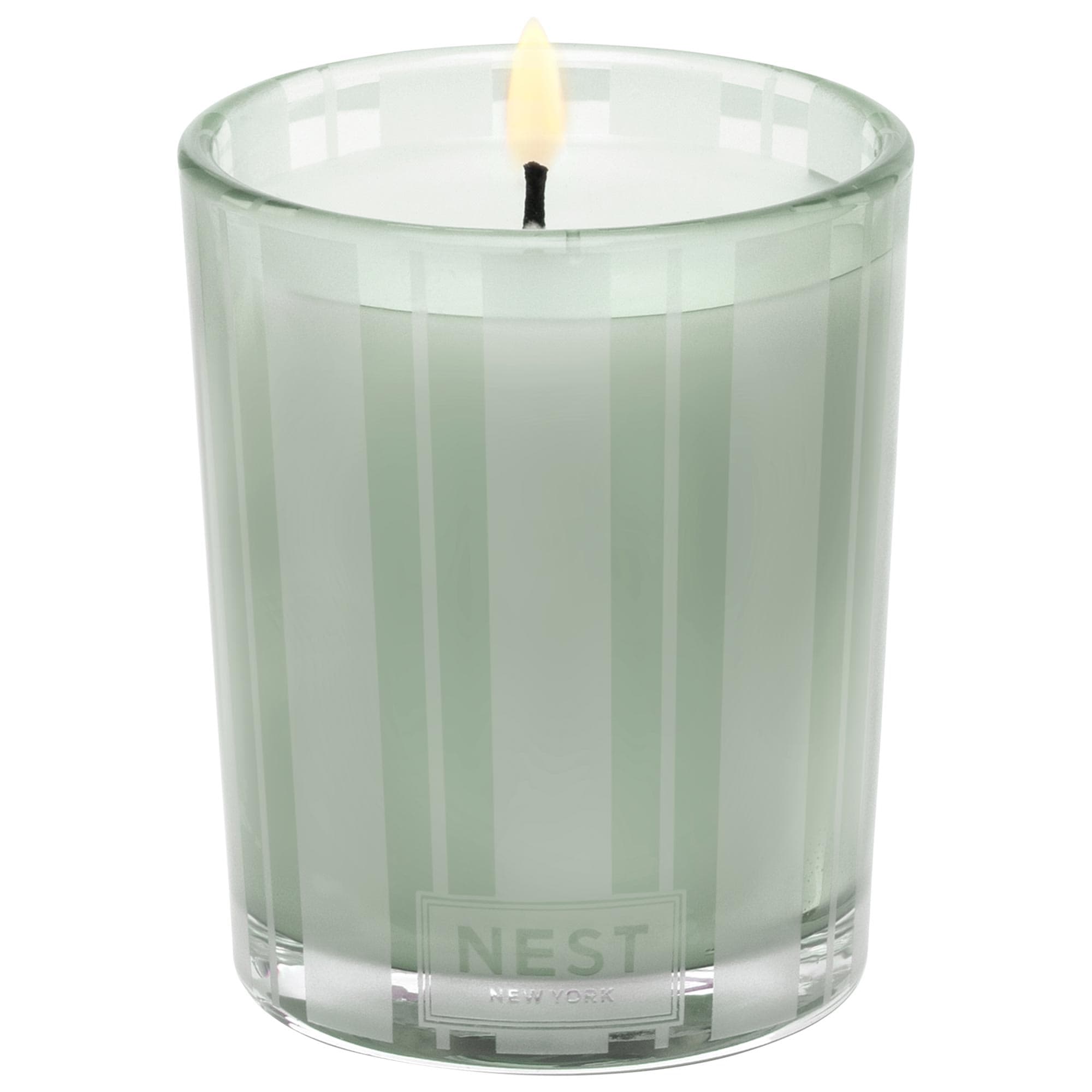Fragrance Description: Scent your sanctuary with this votive candle which blends wild mint essence and eucalyptus with basil and Thai ginger to clear your mind and awaken your senses.