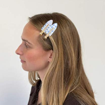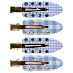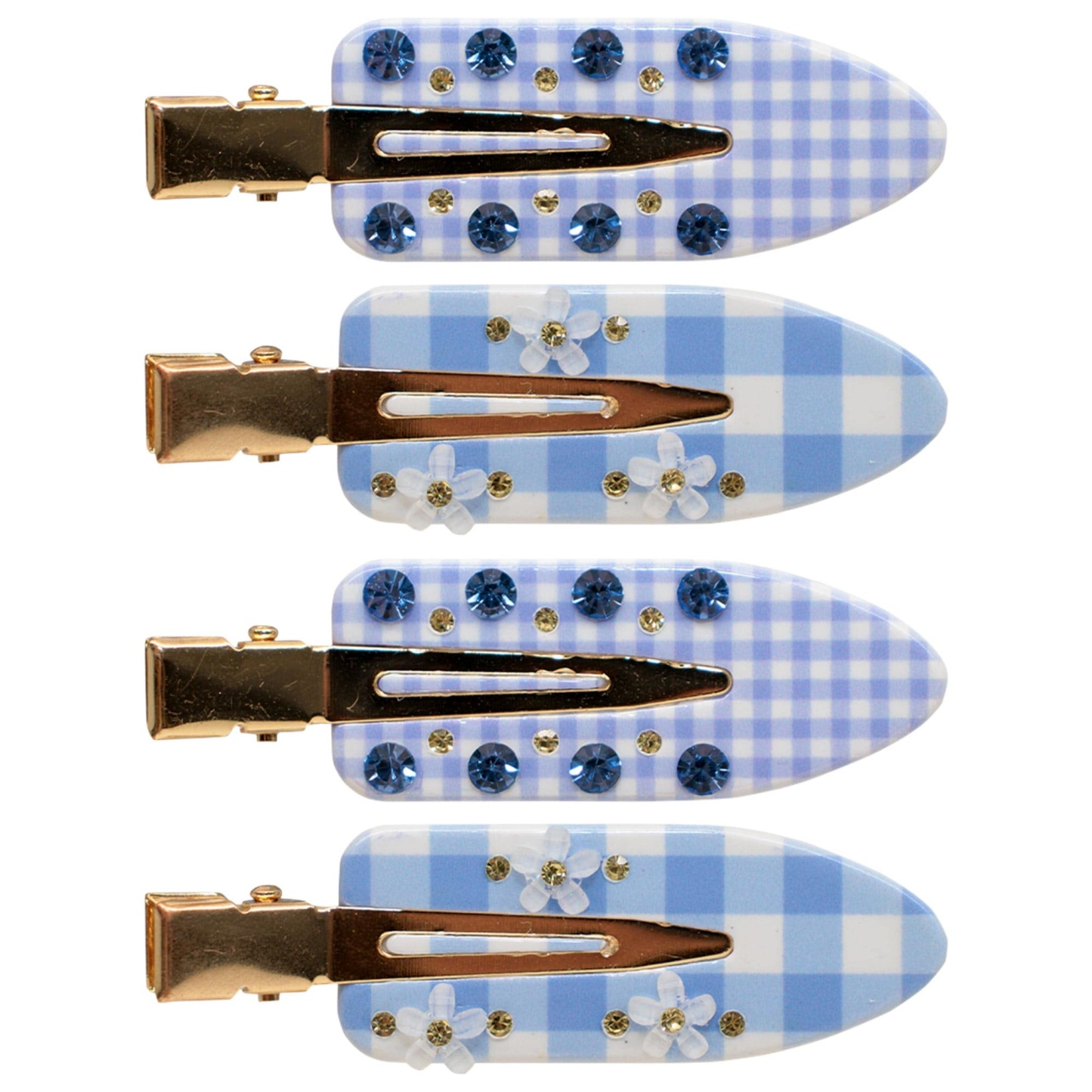 What Else You Need to Know: These four charming, gingham-print makeup clips feature a mix of sparkling-blue rhinestones and delicate floral accents, adding a playful yet polished touch to your hair routine.
