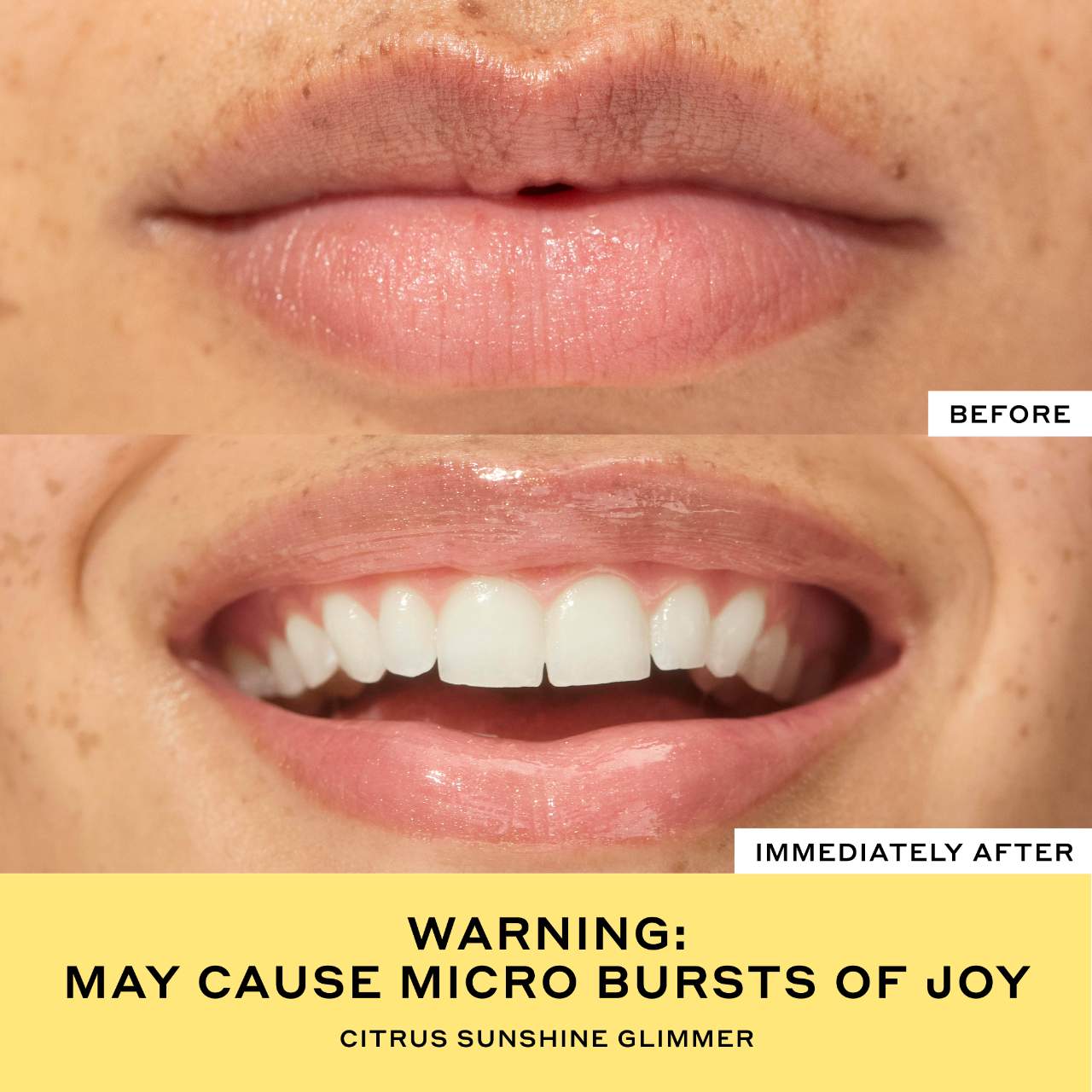 - Citrus Sunshine Glimmer: Sheer tint with gold glimmer + fresh citrus scent