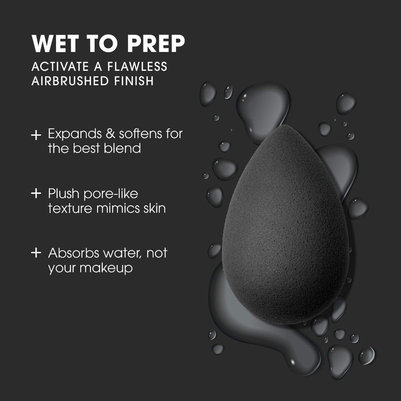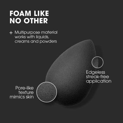 An edgeless, reusable, high-definition cosmetic sponge applicator in the pro-favored shade of black.