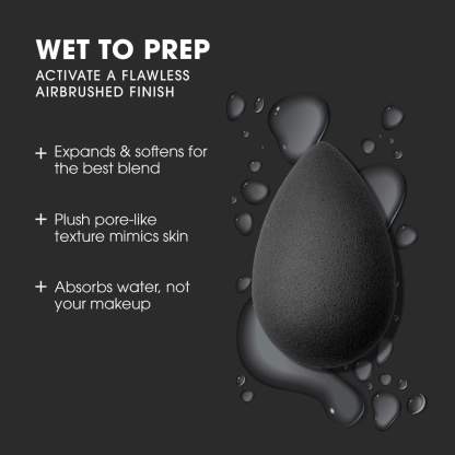 The aqua-activated™ sponge grows to about twice its size and absorbs minimal product, so your favorite formula lands on your complexion, not your sponge. When wet, the super-soft material provides an even, smooth blend and bounce. The large, rounded surface area ensures a quick application while the contoured tip offers precision.