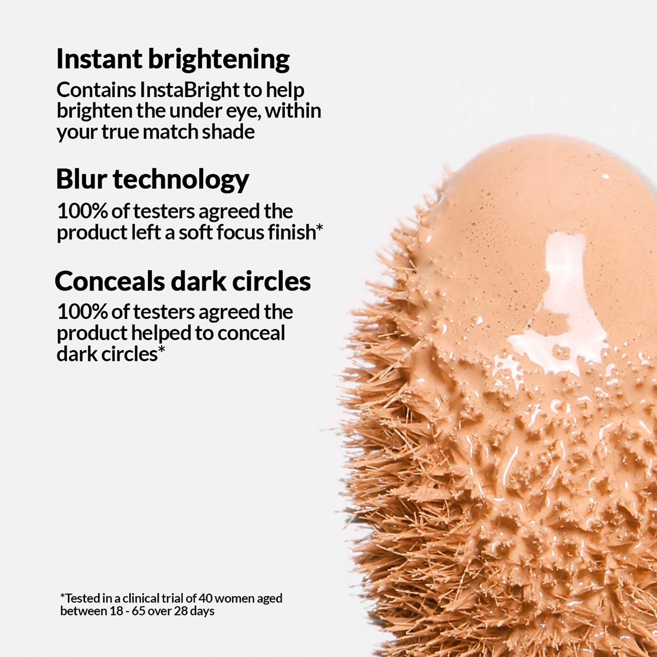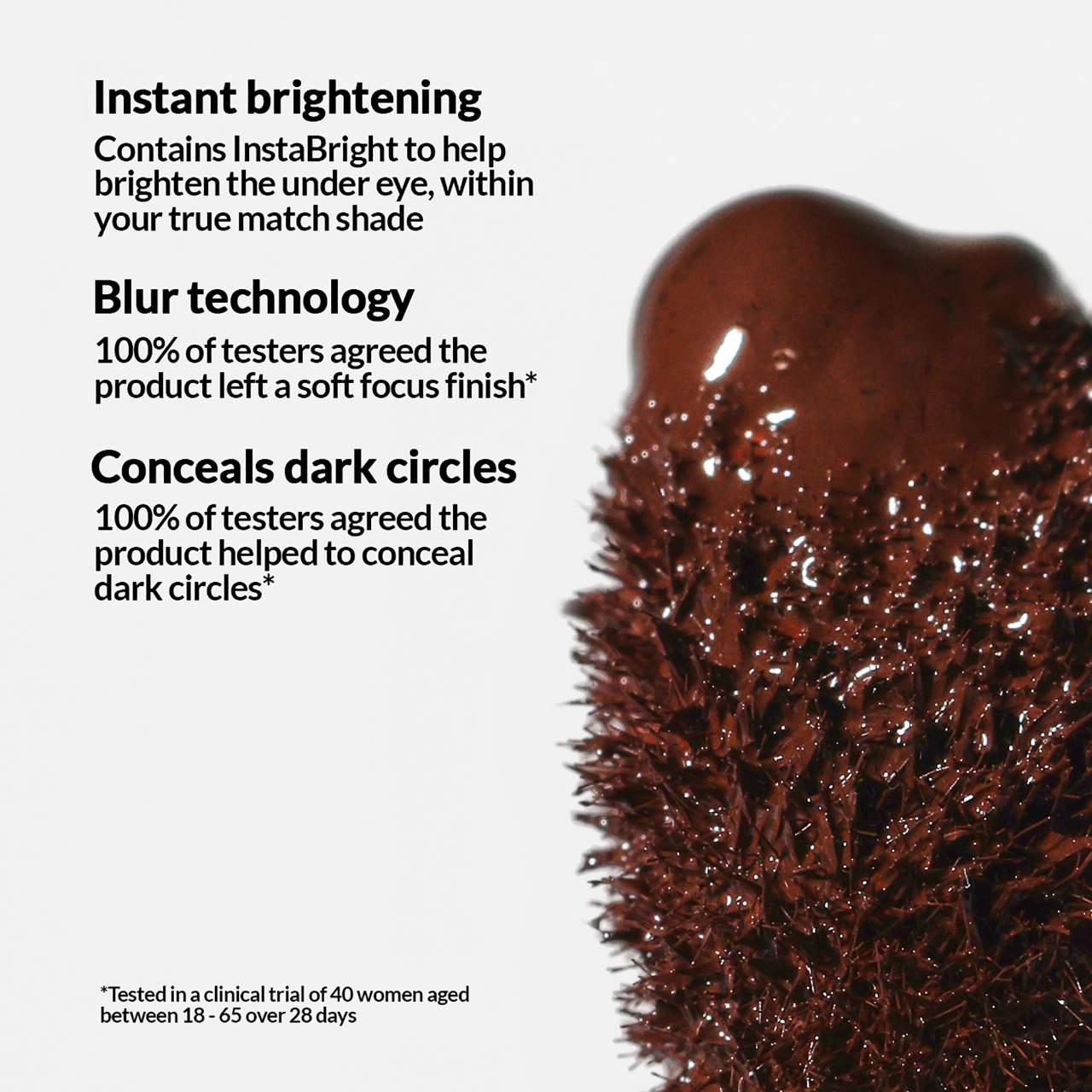- InstaBright: Visibly evens, smooths, and brightens the under eye.