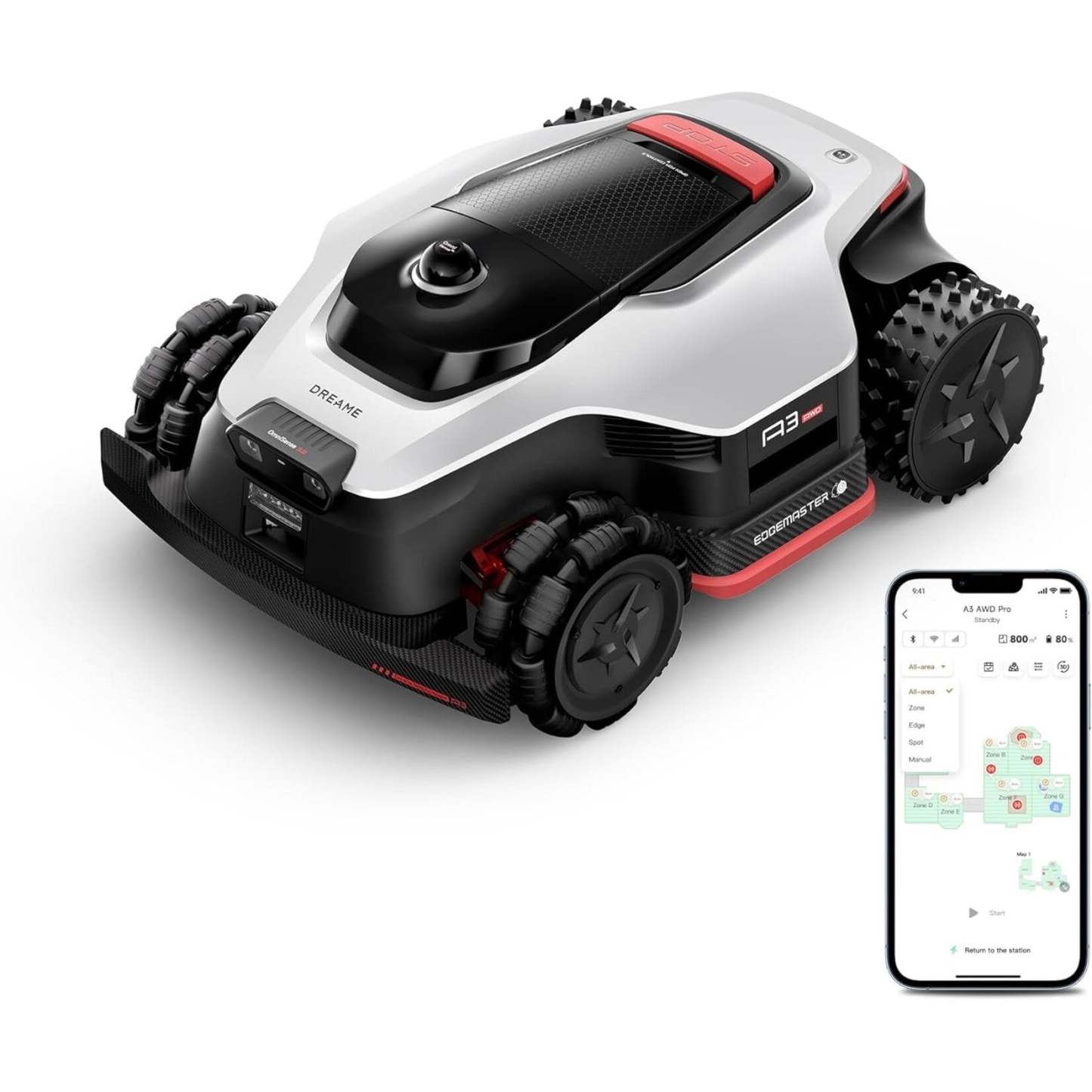 The Dreame A3 AWD Pro robotic lawn mower delivers wire-free AI navigation, 4WD power, and precision edge cutting for lawns up to 0.5 acres.