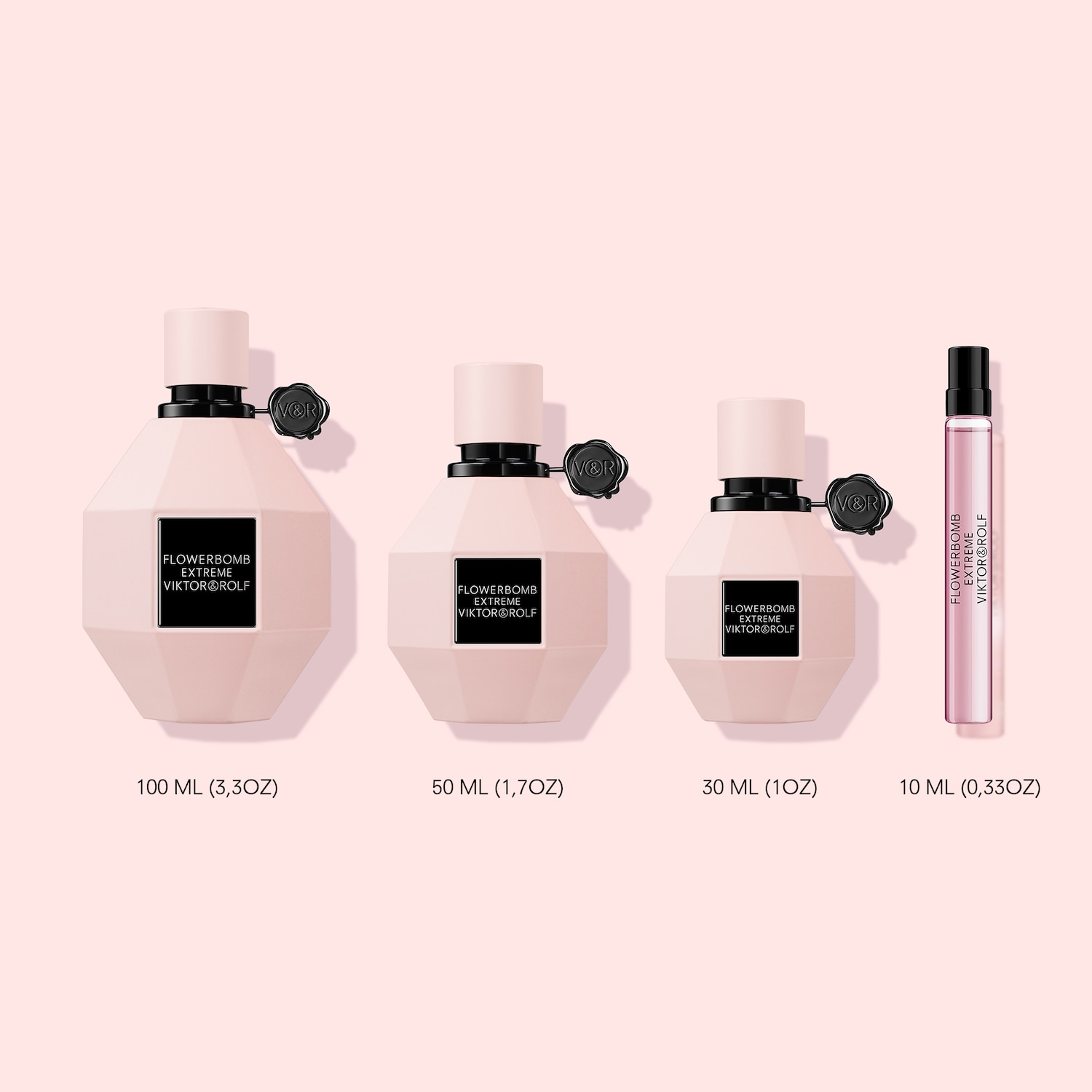 About the Bottle: Flowerbomb Extreme is the true essence of luxury. For such an unmatched and fearless floral explosion, Viktor&Rolf revisited the iconic Flowerbomb bottle, transforming the multi-faceted diamond-shaped bottle to matte pink while adorning it with a bold, black Viktor&Rolf seal.