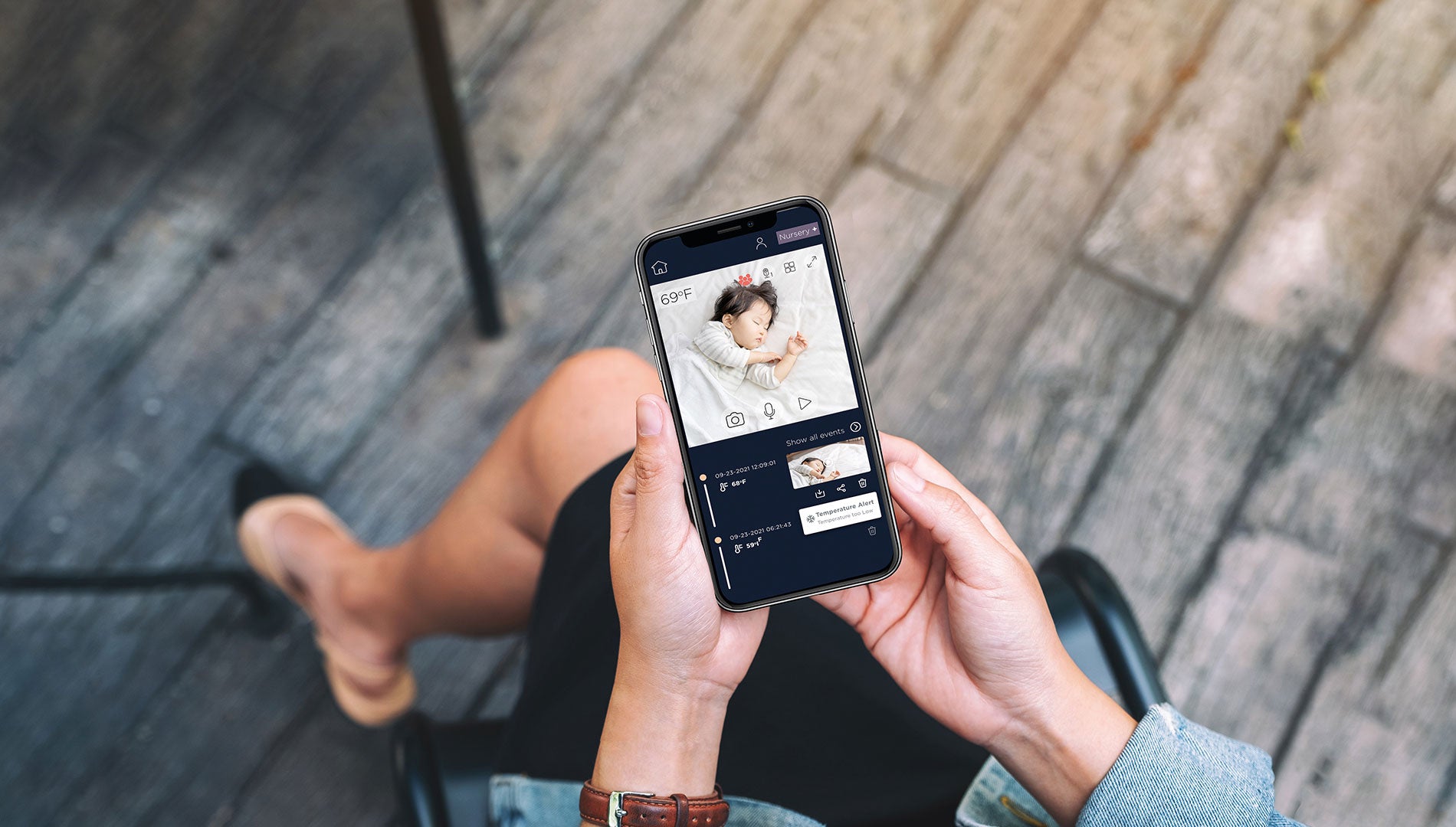 - Motion, sound and temperature detection with notifications