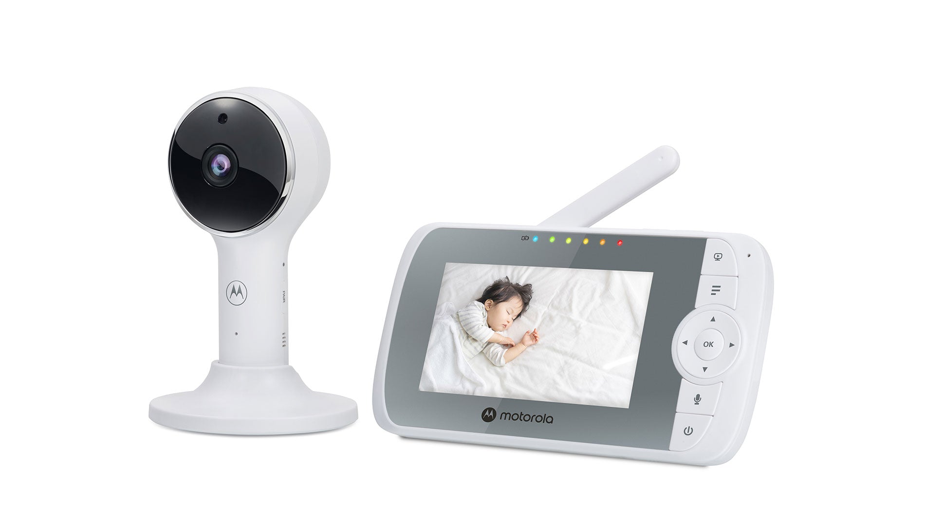 A digital camera with pan, tilt, and zoom is included in the Motorola VM64 Connect, which connects to the Motorola Nursery app via Wi-Fi to enable Full HD (1080p) video. Use the two-way talk feature to communicate with and hear your children while at home or on the go.