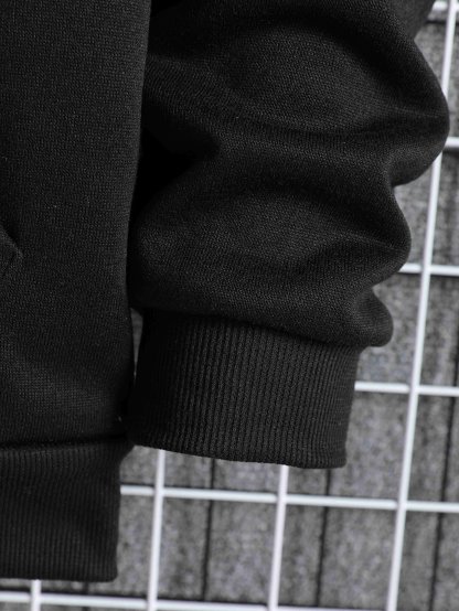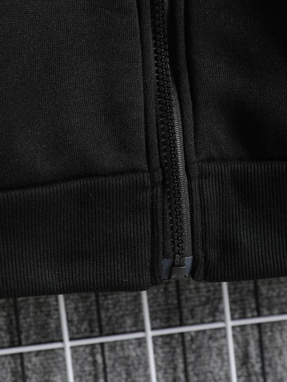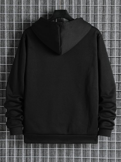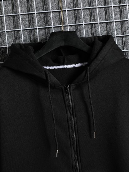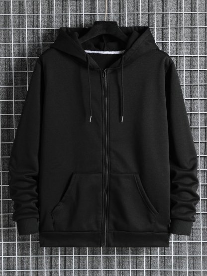 Men Zip Up Drawstring Slant Pocket Hoodie