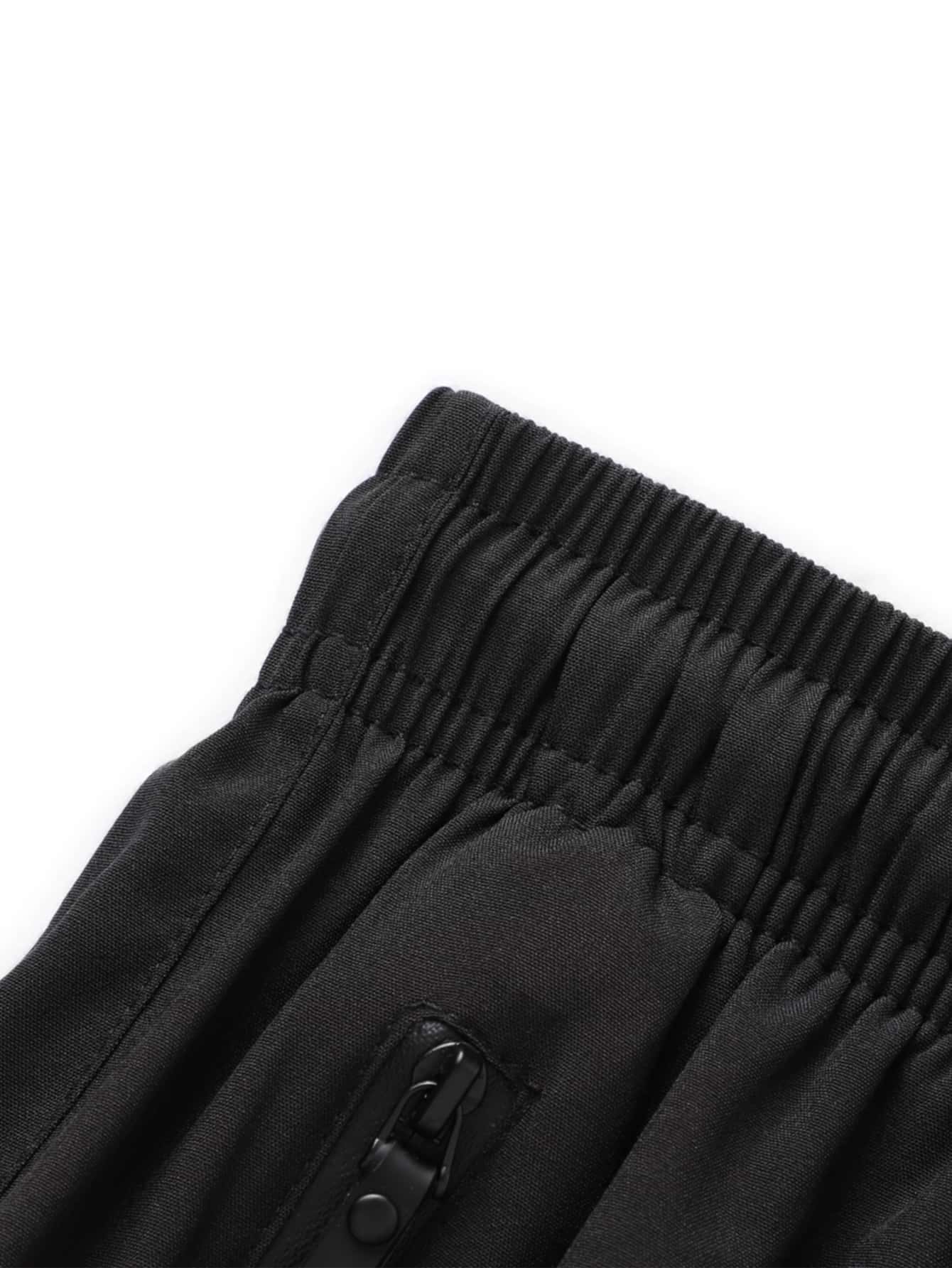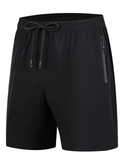 Men Drawstring Waist Zipper Pocket Shorts