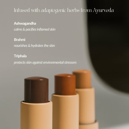 What it is: A creamy bronzer infused with adaptogens from Ayurveda that adds a natural sunkissed look or can be layered for a sculpted finish.