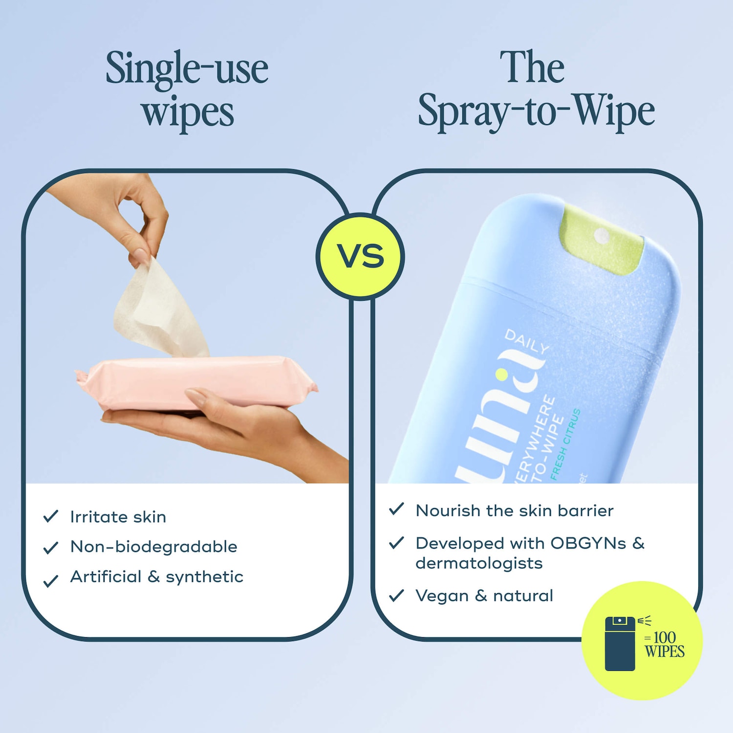 Clinical Results: In a clinical study with 60 respondents, female (including non-binary), aged 25-60, all skin types, users of feminine-hygiene wet wipes or cooling sprays, with concerns about hot flashes and sweat and body odor: