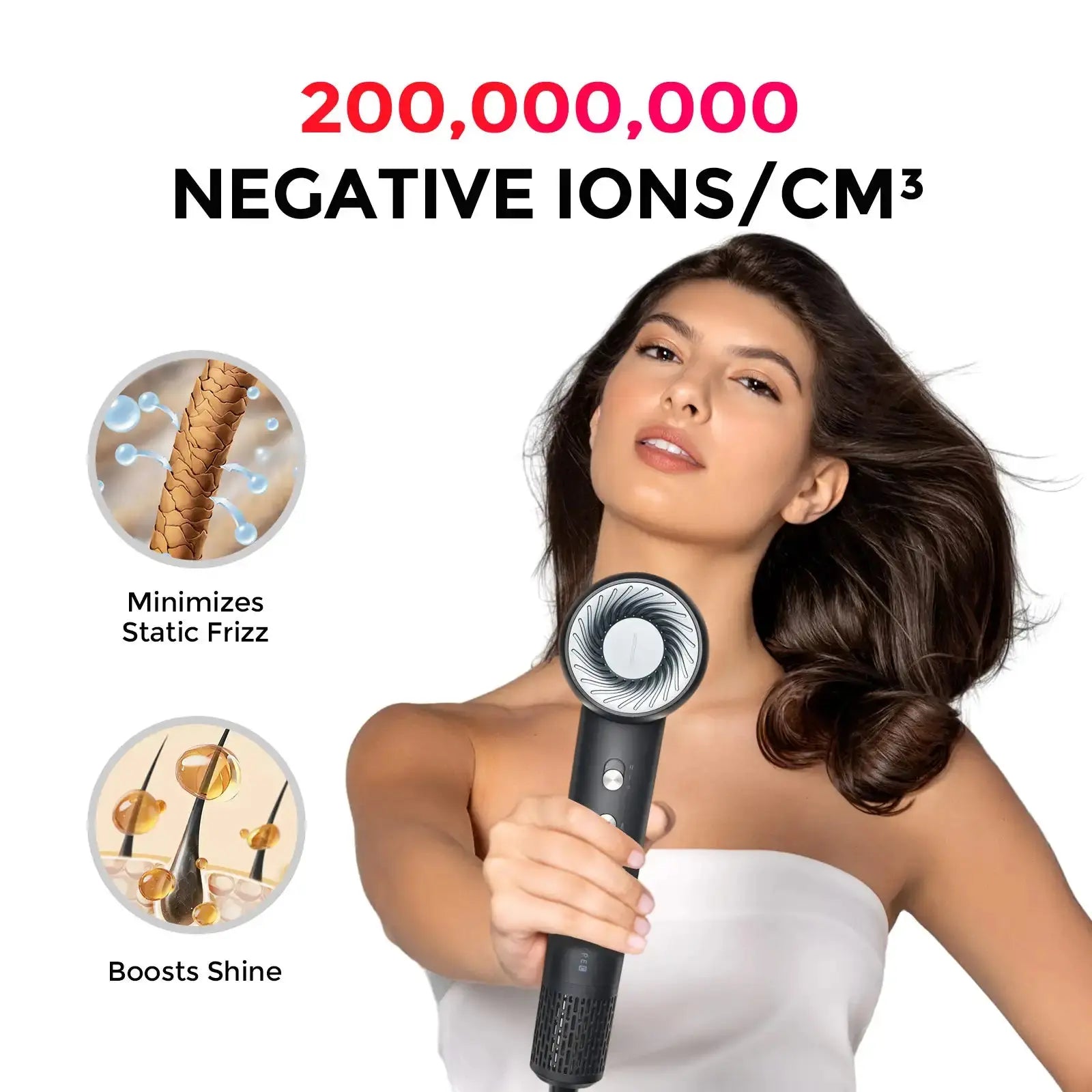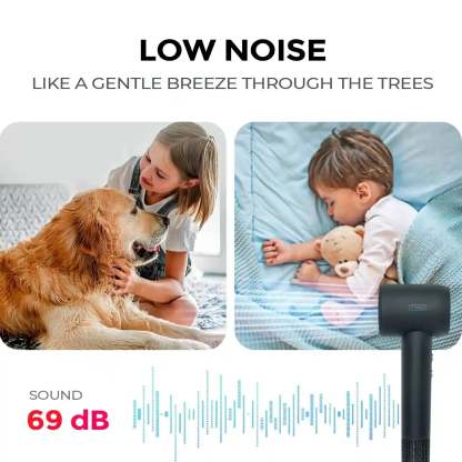 Experience lightning-fast drying with the High-speed Hair Dryer. Featuring a powerful 110,000 RPM brushless motor and 20L/s airflow, it transforms wet hair in minutes. Enjoy a salon-soft finish with 300 million negative ions and smart temperature control for no heat damage. Our spiral airflow technology provides a powerful yet gentle drying experience. Compact and portable, it’s 60% slimmer and weighs just 0.83lb, perfect for travel. With ultra-quiet operation at 69dB, 2-speed options, and 4 temperature settings, personalize your look easily. Plus, the built-in leakage protector ensures safety.
