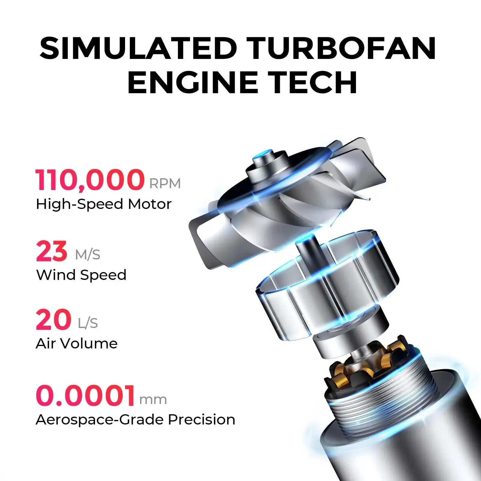 - Powerful 110,000 RPM Brushless Motor and 20L/s Airflow