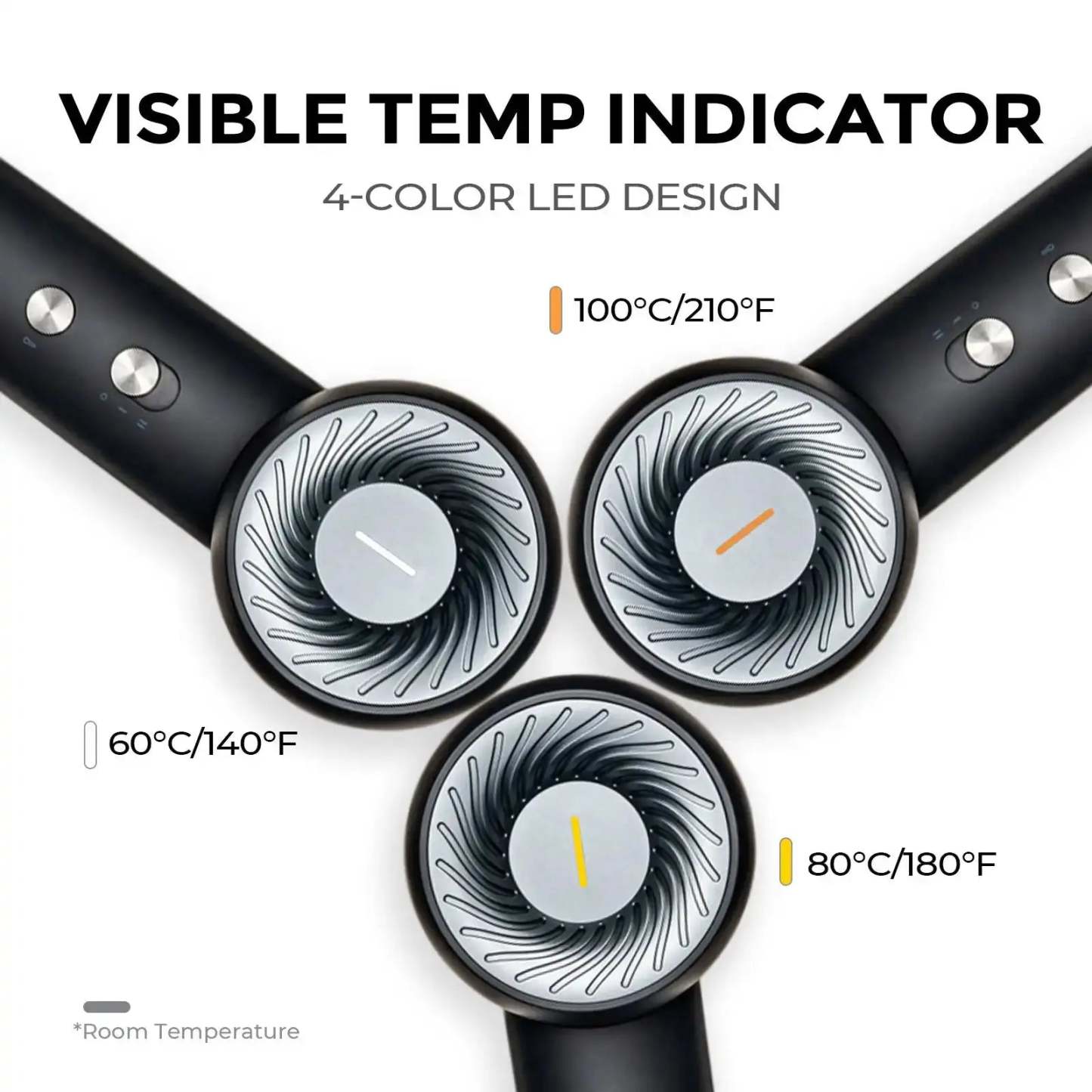 - 4 Temp & 2 Speed Settings ( Cold shot/140°F/180°F/210°F)