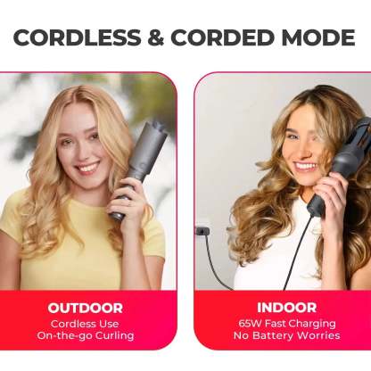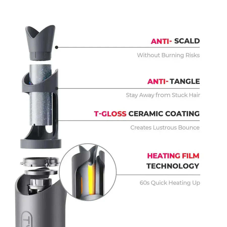 Transform your styling routine with , 1 inch cordless, and corded Automatic Curling Iron. With a cordless design and dual voltage compatibility, it's the perfect travel essential. Powered by a massive 7000 mAh battery, offers up to 60 minutes of cord-free styling. T-GLOSS ceramic coating and 200 million negative ions create long-lasting, salon-quality results. Effortlessly create stunning curls anytime, anywhere with the perfect blend of style, innovation, and convenience.