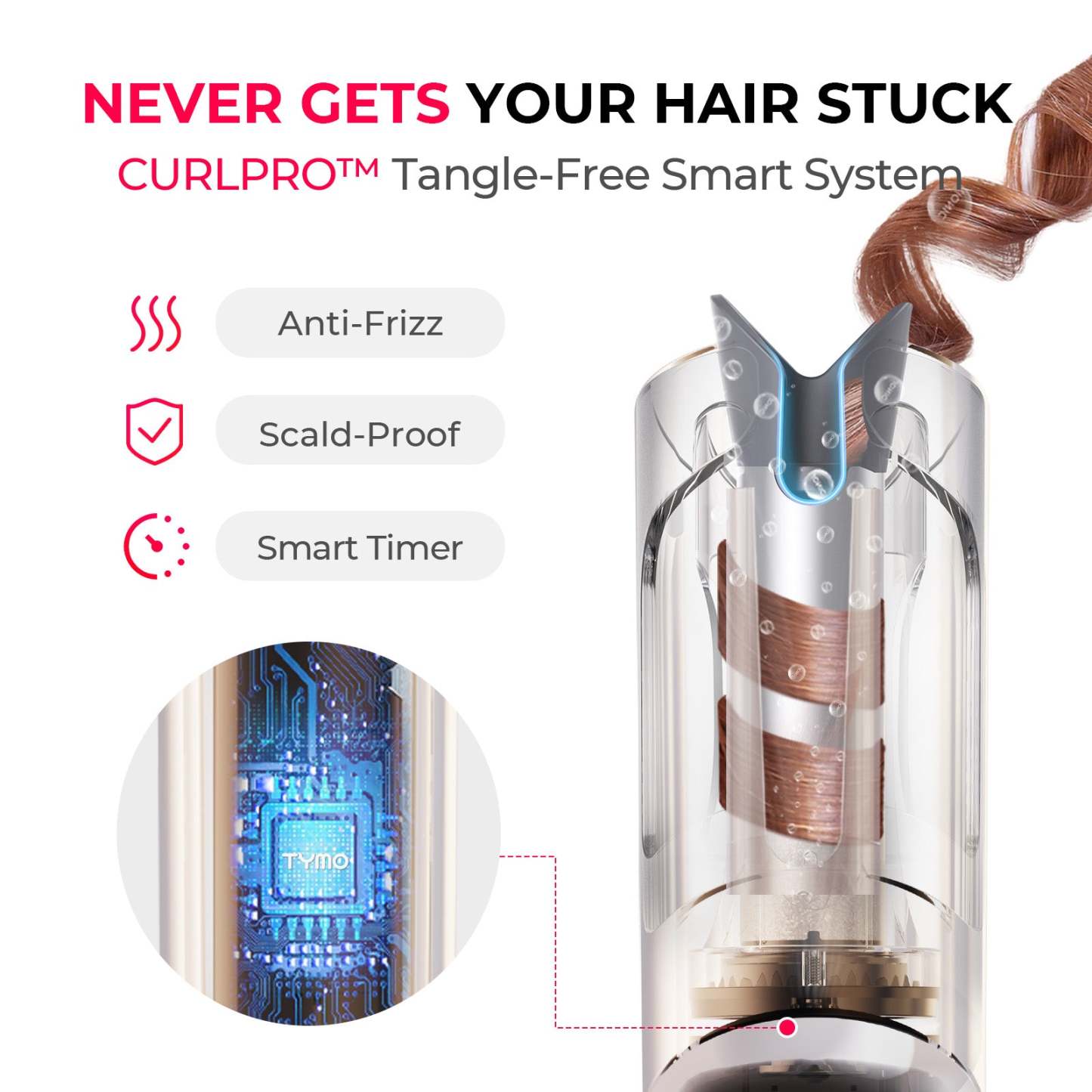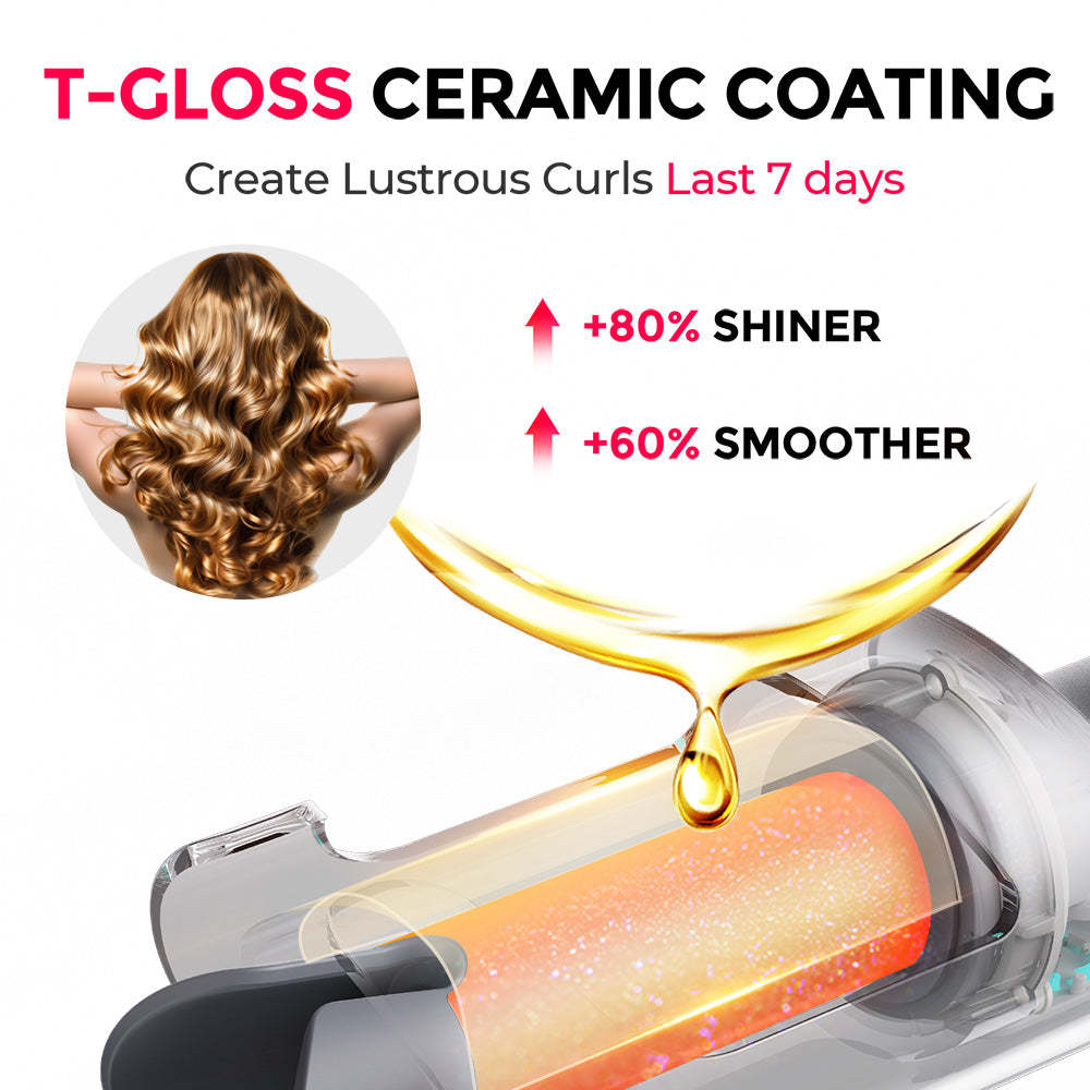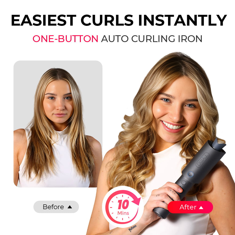 Achieve quick, consistent curls in just 10 minutes with the auto-rotating curling iron. Designed with beginners in mind, it features a one-click rotation function to take the hassle out of styling. The 360° cool-to-the-touch anti-scald shell ensures safe, tangle-free use, making it ideal for all hair types. Infused with T-GLOSS ceramic coating and 200 million negative ions, TYMO CURLPRO locks in moisture, delivers stunning shine, and creates long-lasting curls that hold for up to 72 hours. Get ready for smooth, salon-quality waves with zero effort.